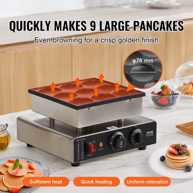 Craft golden, bite-sized pancakes in minutes with this Electric Dutch Pancake Maker. Designed for both home cooks and professional dessert makers, this 9-cup grill lets you create fluffy, crispy pancakes with ease. Whether it’s breakfast, a sweet snack, or a café special, this compact machine helps you serve perfection every time. Built from premium stainless steel with non-stick plates, it’s both stylish and durable—ideal for any kitchen, café, or food stall.