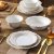 Each piece in this dinner set features four distinct relief patterns that blend modern simplicity with classic artistry. From floral motifs to subtle contemporary textures, every plate and bowl stands out with its own character while maintaining a cohesive and refined look. The glossy white finish enhances the beauty of your meals, making even a simple breakfast look gourmet.