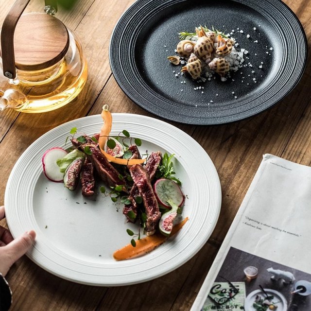Perfect for both home and restaurant use, this frosted ceramic plate suits any occasion. Serve sizzling steaks during weekend dinners, colorful salads at lunch, or slice up your favorite cake for dessert. Its minimalist color scheme complements any decor, making it suitable for family meals, romantic dinners, and festive gatherings alike.