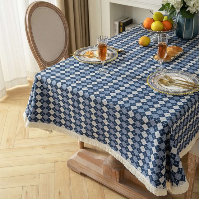 Elevate your home decor with this Vintage Blue Daisy Tassel Round Tablecloth. Crafted from a blend of polyester and cotton, this tablecloth combines the charm of vintage style with a refreshing modern touch. Featuring a beautiful jacquard design, it offers a rich texture and a luxurious feel. The intricate blue daisy pattern is both timeless and sophisticated, making it a perfect addition to any dining or coffee table.